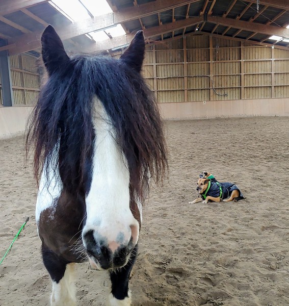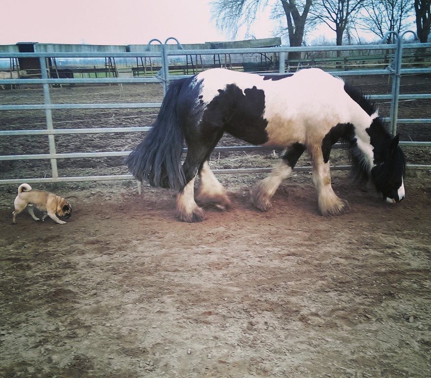 sind Mops Linus, Schäferhundmix Aramis und Tinkerstute Ronja.